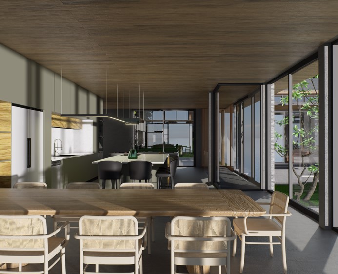 Inspired by the concept of a pavilion, the living spaces are designed to “breathe” in and out, creating an atmosphere that feels alive. Open floor plans encourage airflow and natural ventilation, enhancing comfort and reducing reliance on artificial cooling. The design promotes a harmonious relationship with nature, allowing residents to experience the beauty of the outdoors from within.